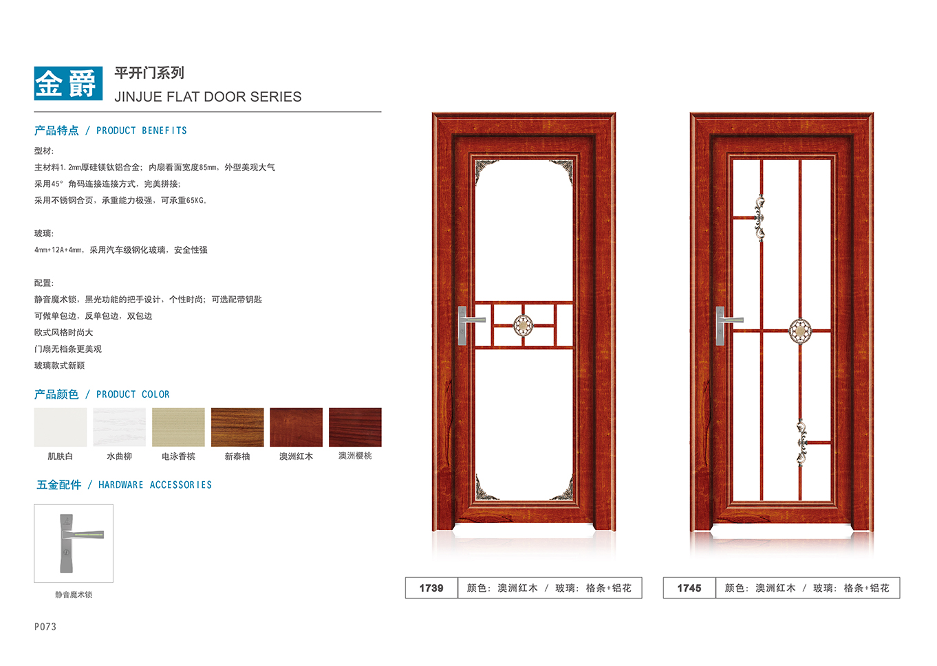 鋁合金門窗有粉末噴涂,陽極氧化、電泳涂裝、木紋轉(zhuǎn)印處理等多種表面處理技術(shù),有多種顏色及木紋,選擇余地大,能滿足各類建筑裝飾需要,給建筑披上美麗的服裝。